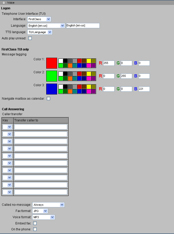 The Voice Preferences web form help explains all the fields on this form.