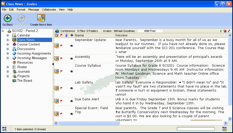 Michael Goodman teaches grade 8 Science at Avalon Middle School. He uses FirstClass ED to manage his classroom material and track communication. He uses FirstClass ED to