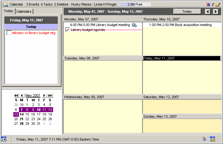 Online scheduling of events (a time commitment, such as a meeting) and tasks (something that you need to do, such as submitting a report). You have a personal calendar, and you may also have access to public calendars.